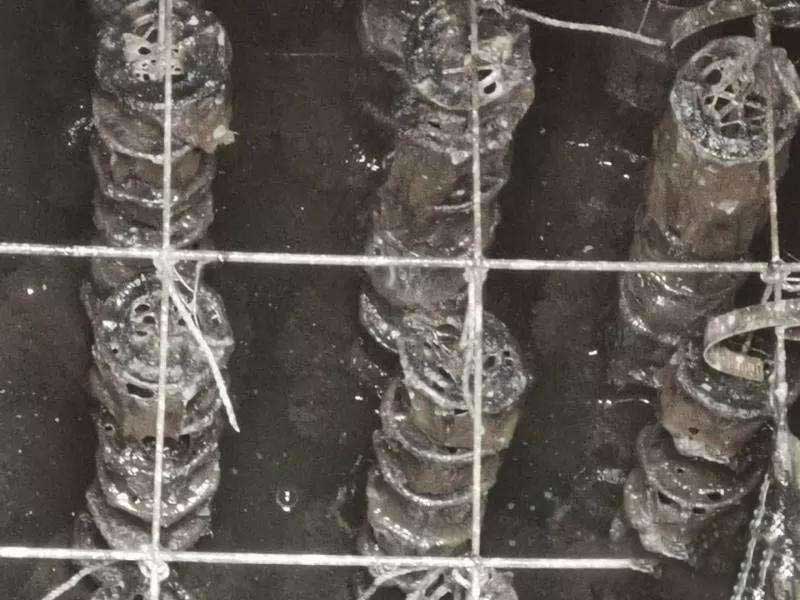 為加快活性污泥的培養(yǎng)速度和馴化速度,從污水處理廠拉取活性污泥投加到前三個(gè)生化池(懸掛填料)內(nèi),如果是經(jīng)過壓濾機(jī)濃縮的干污泥,投加活性污泥比例為池容積的10-15%,如果是從沉淀池底部抽取的污泥投加比例可適當(dāng)增加到池容積的20%左右。